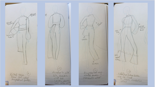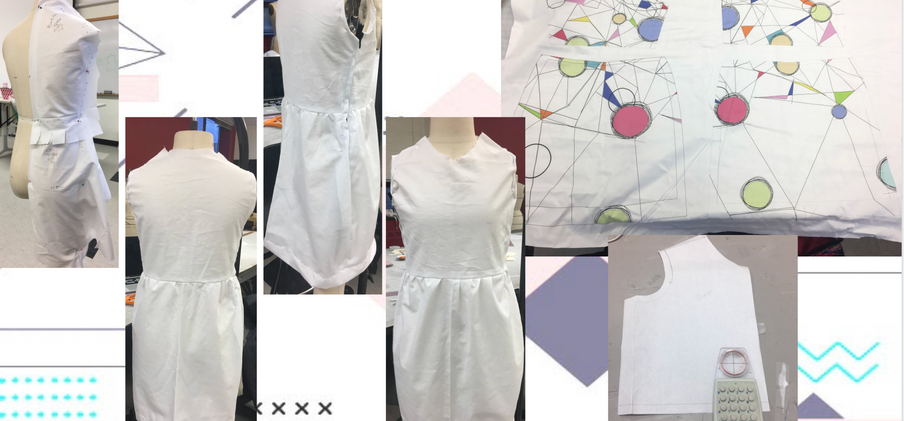 For this class we either make our own patterns by hand or drape them onto the dress form. We also make our own fabric by digitally printing it. We have three projects during the course. Project one is a repeat print. With this our fabric that we make has to be repeated. Project two is an engineered print where we have to make sure that the print is seamless. This means that we have to. digitize our patterns and put the print onto the patterns before they are printed.
